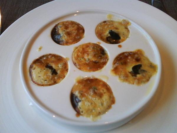 接下來是泡的前菜──焗田螺!! 泡愛吃這道,也愛比較~ 這家的田螺香料味比較重,泡媽說應該是有放茴香。泡比較習慣「隨意鳥地方」的田螺,蒜頭奶油放多一點比較香,不過見仁見智~ 不愛吃奶油味太重的人搞不好會喜歡這家的手藝~