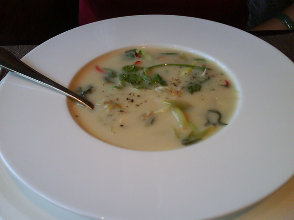 接下來是湯點,泡媽的酸辣淡菜湯,喝起來真的有泰國味~ 但是...這不是西餐廳嘛?? 泡有點想不通~ anyway~ 泡媽還是對這品湯評價不差