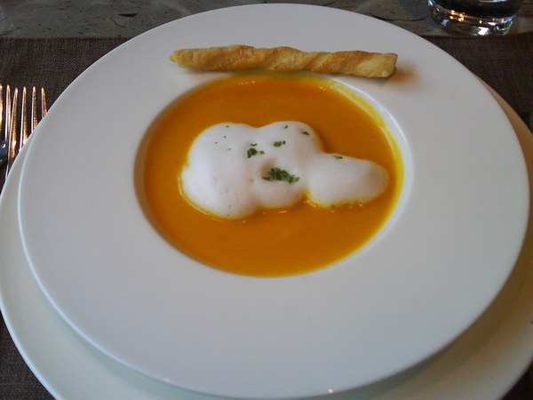 泡點的是想了好久的奶油南瓜湯^^ 好像在台北市要找碗南瓜湯真的有多困難一樣~ 每次去吃西餐要不是菜單上根本沒有、要不就是當天不供應、已經賣完了... 天知道泡今天終於可以點到有多高興!! 不過稍為過於偏甜了一點就是~