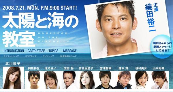 不過照「輩份」,當然還是得要先談談富士電視台的月九大戲。接檔木村拓哉『CHANGE』的是織田裕二7/21開播的『太陽と海の教室(太陽與海的教室)』,看這個劇名,很明顯的就是要演老師嘛~ 日本真的很愛搞教育的戲呢~ 這一季還有米倉涼子的新戲也是要探討教育問題~ 女主角請到去年據說以『抹布女孩』上位的北川景子~ 上不上位,這個泡就不予置評了,因為她不在泡欣賞的女優名單上~ 倒是那個豪華的學生陣容阿!! 『花ざかりの君たちへ~イケメンパラダイス~(日版花樣少年少女)』的岡田将生和山本裕典、『Life』的北乃紀伊、『プロポーズ大作戦(求婚大作戰)』的滨田岳,還有Lead的鍵本輝。嘖嘖,光這個陣容泡就打算追上兩集看看~ 只是最近校園劇有點氾濫了~ 上一季也才剛結束『Puzzle』、『ルーキス(Rookies)』和『ごくせん(極道鮮師)3』,所以這一季的劇本真的很重要~ 要是重複的陳腔濫調太多的話,難保觀眾不會失去耐性。再加上今年夏天,大家還有奧運要關心~ 真的,收視率要小心ㄋㄟ~