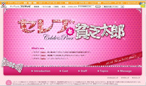富士在火九的部份找來了上戶彩搭配今年竄紅的團體『羞恥心』的團員上地雄輔一起上陣,『セレブと貧乏太郎(Celb&Poor)』要玩富家女和窮小子的萬年老梗。上戶彩飾演的角色飾一個超級有錢的富家女,父親是旅館業的大王、母親是演員,有錢到不食人間煙火完全不知人間疾苦的揮霍大小姐,被日媒戲稱為「Paris Hilton的翻版」。上地雄輔所飾演的角色則是妻子過世、帶著三個孩子,努力要養家活口求生存的苦命男子。老實說,用這種梗寫劇本真的會很恐怖~ 因為前面用同樣題材寫過的劇本也不少~ 而且上戶彩近幾年都被評為「收視毒藥」,之前的『ホカベン(熱血律師)』收視掉到平均只有八點多~ 雖然這一次的角色,顯然是她擅長的誇張搞笑型,但是與其一直曝光泡認為還不如去多多進修、好好挑劇本比較好~配角的部份,國仲涼子和柏原崇應該算是女配一號和男配一號了吧??國仲涼子之前雖然在引起好評的『ホタルのヒカリ(螢之光)』裡也有出演,但是後半段就完全被晾到一邊去沒得發揮,虧前半宣傳的時候還曝光的那麼多,真是不成正比,希望這一季會好一點。柏原崇在『ハチミツとクロバ(蜂蜜幸運草)』裡的癡情迷倒了一票人,有點壞男人的形象又帶著與外表不符的體貼,不知道這一季又會有怎樣的表現? 看來泡對這一劇男女主角的期待還不如男女配角的關注要來的多... 真是不像話阿.....