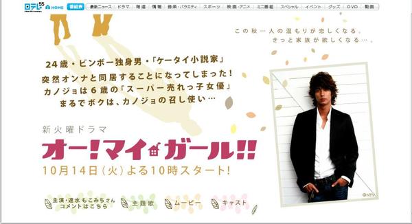 最後來瞧瞧NTV本季端出的菜單,首先是NTV本季的主打,火10的「オー!マイ・ガール!!(Oh!My Girl!!)」。由速水もこみち和加藤ローサ主演,24歲的貧窮單身小說家,突然被迫得要和6歲的侄女同居!!! 速水もこみち似乎還沒有挑戰過這麼有「愛心」的角色~ 通常他演的角色都是很帥、很瀟灑,負責和女優談戀愛的~ 這次突然丟個類似香取慎吾『バラのない花屋(沒有薔薇的花店)』的角色給他?? 是要叫速水的那一群女朋友提前體驗家庭生活嗎?? 泡懷疑那個家會翻過去~ 還有最近日劇很愛找童星ㄚ?? 不過目前泡認為最會演的還是上次shingo女兒的那個小女生^^ 她上一季也有出演『ヤスコとケンジ(康子與健兒)』演康子小時候的樣子~ 可惜的是泡忘了她的名字了:P