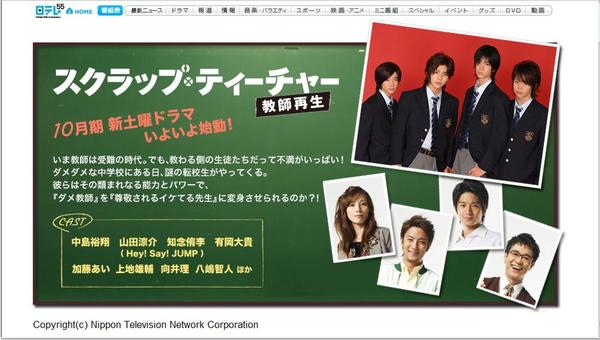 另外NTV的土曜劇則是狂打傑尼斯牌!! Hey!Say!JUMP繼『ごくせん(極道鮮師)3』推出高木雄也之後,這回一口氣叫上了中島裕翔、山田涼介、知念侑李和有岡大貴~ 看來該團的粉絲要高興到暈過去了吧?? 他們將要擔綱新一部的校園劇『スクラップ・ティーチャー 教師再生』和之前的校園劇都以愛心老師感化學生比起來,這一部劇是逆向操作~ 四個天才學生幫助老師導正校園風氣~ 夠有魄力吧~ 而被幫助的老師就是→→上地雄輔!!!??? 沒錯~ 他真的在演員名單上啦~ 泡是不知道日本現在有多缺男優,但是這一季已經出現了第二位需要軋戲的人~ 想來上地雄輔接下來的三個月將會很忙很忙很忙~ 又要養孩子又要管學生的,還真不是普通的累耶~ 其他演員陣容還包括了加藤愛、向井理和八鳩智人~ 加藤愛到底演什麼角色泡沒聽說,不過總覺得她的演技有一點不自然,該不會這一季又是要像『派遣の品格(派遣女王)』一樣被人欺負吧?? 這次可沒有春子前輩來救妳了唷~ 向井理上一季在『正義の味方(正義的夥伴)』裡果然啥也沒有發揮到...除了一直被山田優欺騙之外,都不知道去做什麼的... 你怎麼老是這麼不會挑劇本ㄚ.... anyway~ 期待看看這一季的收視囉~