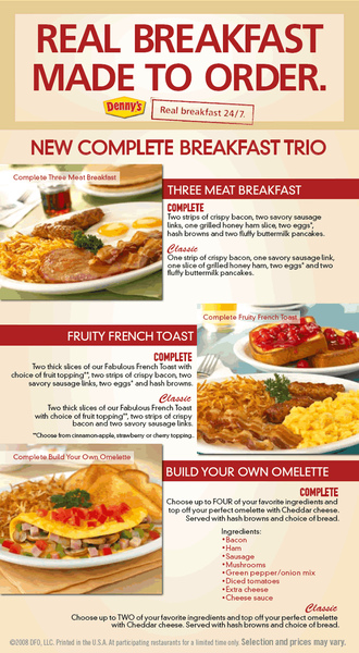 Denny's和IHOP都是美國知名的連鎖早餐店,泡記得第一次去Denny's是某次禮拜一早上的地理課,老師dismiss所以我們多出兩小時的空堂,八點的課很多同學來的時候根本都還沒怎麼清醒,更不要說早餐了,於是日本來的華僑同學就提議去學校附近的Denny's坐坐,順便解決一下民生問題。