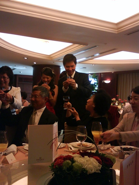 而碰到這種長輩聚集的場面,最恐怖的就是關於婚事的逼問... 好在泡現在還不到需要被緊迫盯人的地步~ 今天行情最好的是二表哥David!! 今年大概要31的他,雖然是男生也還是逃不過被各家伯叔嬸婆抓來逼供的地步~ 每個人都問說他什麼時候要娶^^ 遠在美國的大表哥、小表哥和在日本趕不及回來的三表哥應該很慶幸自己能夠逃過這一劫~ 另外就是今年才要去接受博士論文口試,也還沒結婚的小姑姑,已經三十有五還待字閨中的她目前還是沒有對象,於是就成了眾家長輩最關心的對象,每次家族聚會的場合都免不了要被問一回「什麼時候要嫁?」。不過好在前面有兩位苦主頂著,所以泡才不會整頓飯都被盯場~ 不過還是免不了要被拖下去淌一下渾水,然後四姨婆就很大聲的要求同桌長輩要幫我介紹對象... 唉~ 這就是這種喜宴場合最累人的地方~ 寒喧客套I can handle,但是這種只能苦笑的場面就...