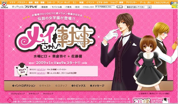 富士的火九新戲也一樣走年輕路線,找來上一季剛演完『Room of King』的水嶋ヒロ、之前在富士月九『プロポース大作戦(求婚大作戰)』裡出演過的榮倉奈々和因『ROOKIES』及『ブラッディ・マンデイ(Bloody Monday)』而受到注目的佐藤健擔綱,演出由漫畫改編的「メイちゃんの執事(我的帥哥管家??)」。