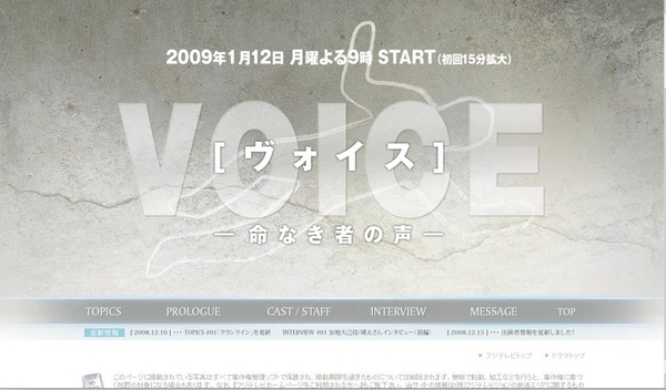 富士的月九大戲『ヴォイス~命なき者の声~(Voice~亡者之聲)』請來瑛太、生田斗真掛頭牌,要發掘法醫學者才能聽見的亡者之聲。編劇的金子茂樹也算是經驗老到的劇作家了,泡還蠻期待他這次的劇本。演員方面,瑛太和Toma在裡面都飾演醫大法醫學系的學生,這也是他們第 一次挑月九的大樑,瑛太算是年輕一輩的男優裡少見的戲路寬廣,從古裝到現代,從『のだめカンタービレ(交響情人夢)』裡的音大生到『銀色季節』裡的滑雪高手、『Unfair』裡面的警察、『サプリ(戀愛補給品)』裡的勾引熟女的廣告界精英,甚至是『ラスト・フレンズ(Last Friend)』裡內心糾葛的美容師,比起一路維持偶像風範的其他男星,他多元嘗試的戲路應該是替自己累積了許多不一樣的經驗,泡還蠻期待他這次的演出的。Toma從『花ざかりの君たちへ~イケメンパラダイス~(日版花樣少年少女)』有了好的開始之後,雖然不能算是一路平坦,不過每次也都能佔到上位選角,希望這次還有機會繼續突破囉~