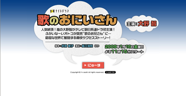 今年是創台50週年的朝日電視台則是推出了一個很可愛的點子,找來ARASHI的Leader大野智演出『歌のおにいさん(唱歌的大哥哥)』。