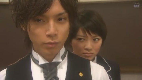 至於這一回和忍私下見面的內奸學生,鏡頭沒有照臉,但是泡特地瞄了一下她的領帶,是一般平結的打法,不過沒有徽章,也就是說,是「陰」級的吧? 而這一齣戲裡,到目前為止出場的「陰」級學生,除了女主角之外,就只剩下那個同寮的山田多美,而且有照到神秘人是短頭髮,山田多美也符合,所以她是隱藏的反派嗎?? 泡本來以為她應該是意外的友軍哩~ 到底怎樣??
