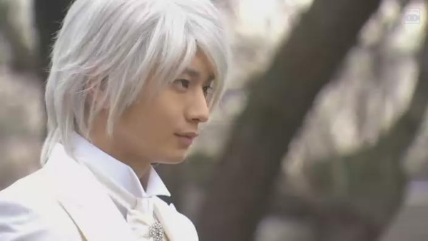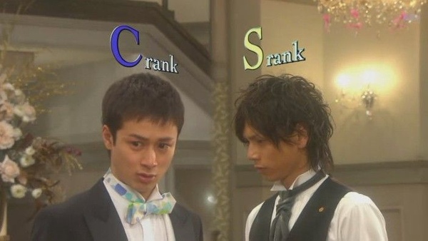 另外發現,忍和理人搞不好是同樣一級的執事喔!! 依照這間學校、這整個故事那麼喜歡用服儀幫每個人分類的慣例,學生裡,「陰」「月」「太陽」三級學生的領帶就不同,執事也是有在西裝外套上面做區分,但是理人和忍的領帶打法是一樣的耶!! 所以泡懷疑這兩個搞不好是一樣S級的執事,只是忍搞神秘,所以把徽章收起來了。至於他現在領帶上的銀色別針,泡猜是露琪雅的執事專用的吧??