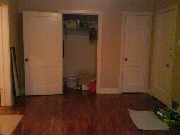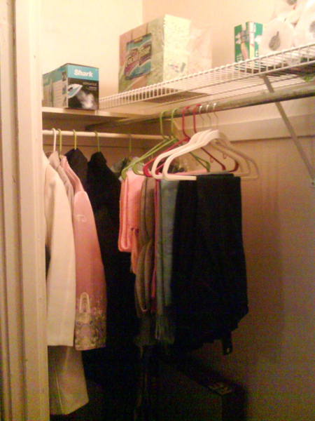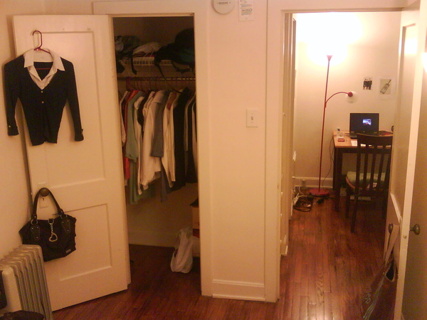 門口進來有兩個walk-in closet,小的被泡拿去收行李箱,大的就掛冬天的衣服順便兼儲藏室。