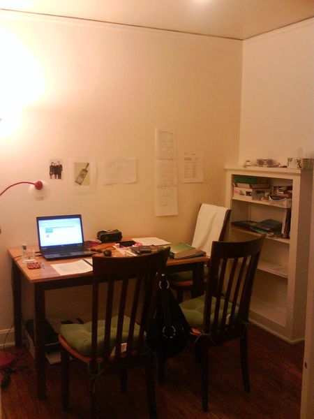 書桌兼餐桌,除了睡覺之外,大部分的時間就都花在這裡了~ 而且泡的電腦兼電視,所以不管是唸書還是娛樂就都在這一間囉~