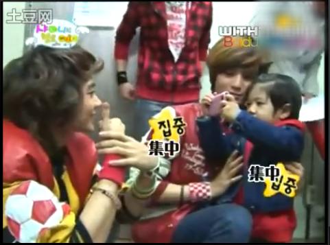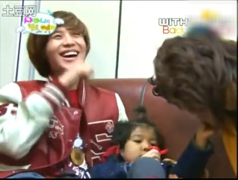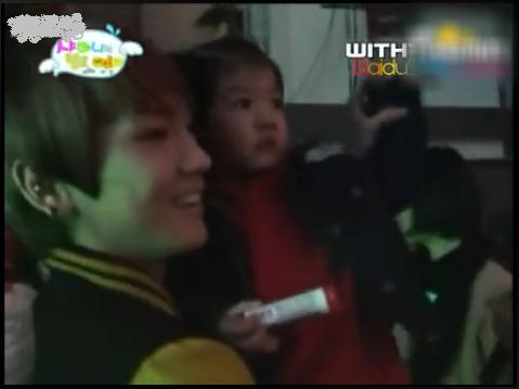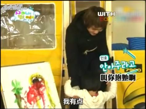 鐘炫還算好,偶爾也知道要來插花搗蛋(?)一下,亂教小朋友扮鬼臉,如果小朋友去到他面前也會抱一下玩一下。