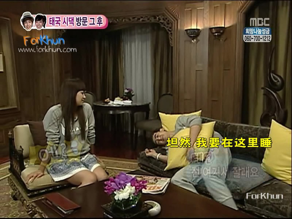 (是說製作組也很奇怪,都已經在婆家拍了六七個小時了,還不放這兩個人去睡覺,反正一周也不過就只願意給我們播20分鐘而已,用得著這麼操勞? 少剪一點不就好了,幹麻還一定要拍房裡阿? 難道是因為租了總統套房不拍太可惜? 總不會連跟飯店都簽了宣傳約吧??)
