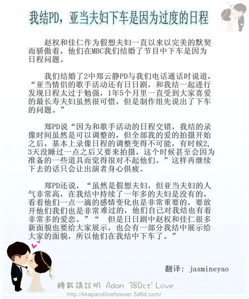 根據PD表示,亞當夫婦告別我結的最後一集放送將在15日on air,之後正式和大家說再見。