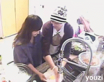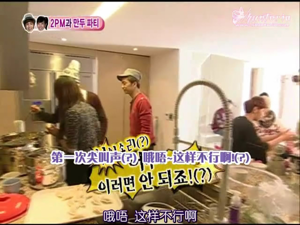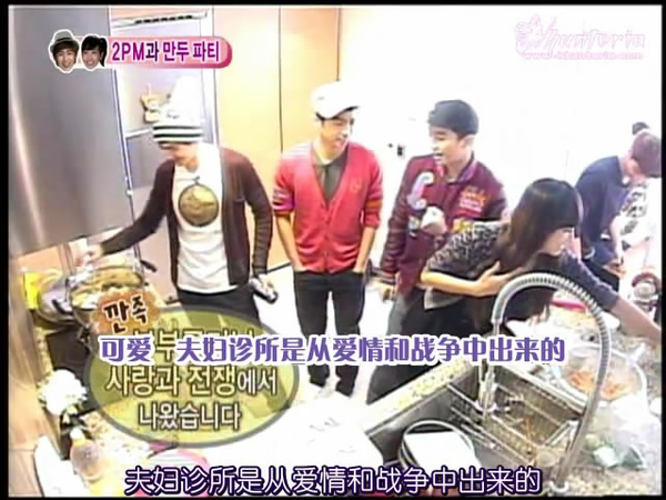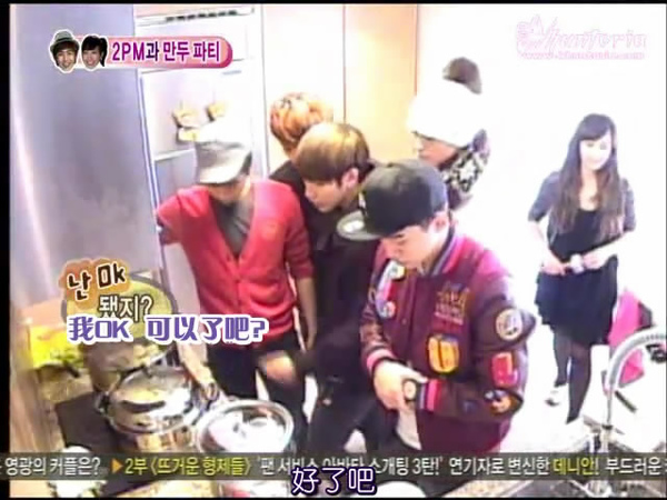MC責任感上身的俊昊趁著餃子還沒全好的空檔開始充當記者訪問嫂子對下午班的觀感,