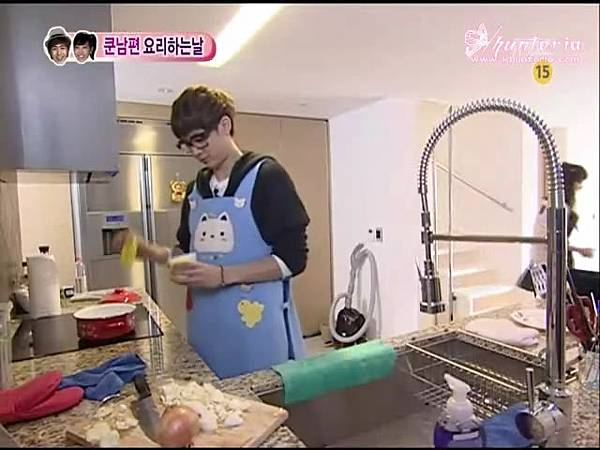 V以為他根本還沒到,所以逕自提了食材去廚房去忙了~