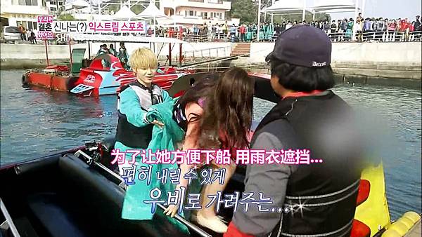 返航上陸的時候,用雨衣幫女生遮裙子避免穿幫的樣子就很不錯了~