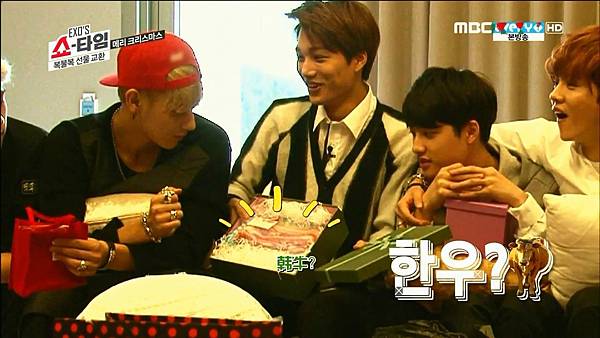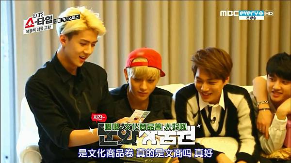 Tao就買了信紙一包!!?? ←你好歹也用個包裝紙包一下啊... 也太.... 沒看到你哥傻眼的表情... 好吧~ 燦烈阿~ 就當你上一集已經收太多禮物了~ 這集就算了吧~