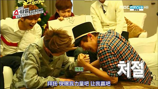 果然肌肉男不是SM家的專長,要看有緊張刺激感的比腕力,泡推薦大家去看下午班和神話前輩們上的那期「勝利之神」,Nichkhun當真不愧他金剛芭比的稱號,連勝四位!