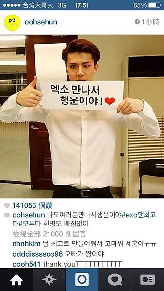 翻譯:我覺得遇見各位也是一種幸運#exo飯最棒#所有人都是