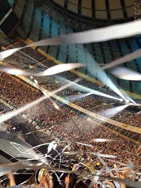 銀色的彩帶同一時間由各處拋向場內,有些坐在樓下的粉絲拉著長長的帶子,為的不過是那瞬間的美麗能夠再多留片刻。
