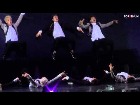 其實泡本來覺得編舞老師應該讓世勛去補某人的位子,因為Kai看之前的飯拍就覺得腰傷已經受不了這麼吃重的份量,身為主舞,整場演唱會除了各自的solo,幾乎就是每首他都得跳,Growl如果他還是兩個梯隊都跳,那下場就是大三角的時候根本直不起來.... 而且世勛在中文版的Growl裡面本來就是跳和某人在韓文版裡第一段一樣的位子,讓他過去幫忙可以在變動最少的情況下直接進行補救。讓Kai過去,因為這人舞蹈實在太搶眼,編舞老師必須把他放在中間,否則觀眾只會覺得畫面重心偏移,所以原本站第二梯隊舞蹈中心的鹿晗和Lay就必須要讓出中間的位子,感覺很可惜~
