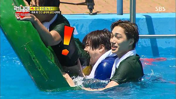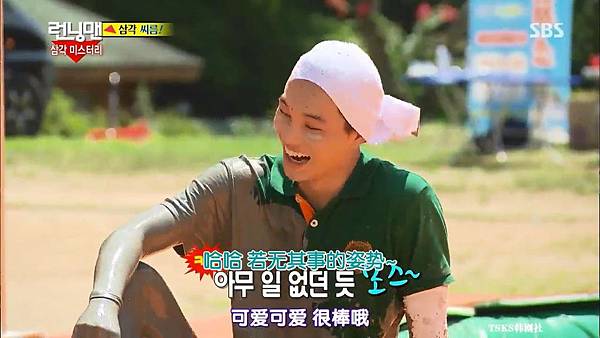 不過相對上次珉豪、敏赫、聖圭、Hoya他們在泥田裡狂奔,這回的偶像們就好命多了~ 除了賽前賽在泥裡弄了半身黑的KAI之外,其他都能好好的保持清爽乾淨上鏡頭阿~